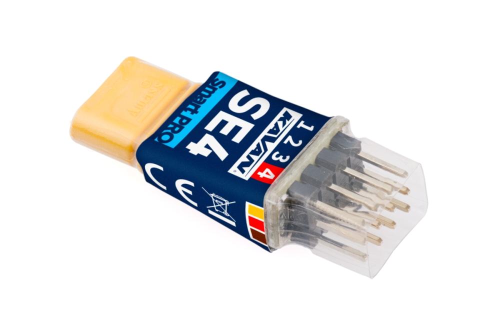 KAVAN Smart PRO SE4 je dekodér/expandér, který převádí vstupní signál sériové sběrnice na standardní servo výstupy (PWM). Nabízí až čtyři konfigurovatelné výstupy pro serva s volitelnou periodou a nastavením fail-safe. SE4 je perfektní volbou pro modely se složitou mechanikou křídel nebo ocasních ploch, kde je možné k primárnímu přijímači připojit více serv pomocí jediného kabelu. Pokud vám docházejí kanály na přijímači, jednoduše připojte SE4 k sériové lince z přijímače a libovolně přiřaďte své vlastní výstupní kanály.